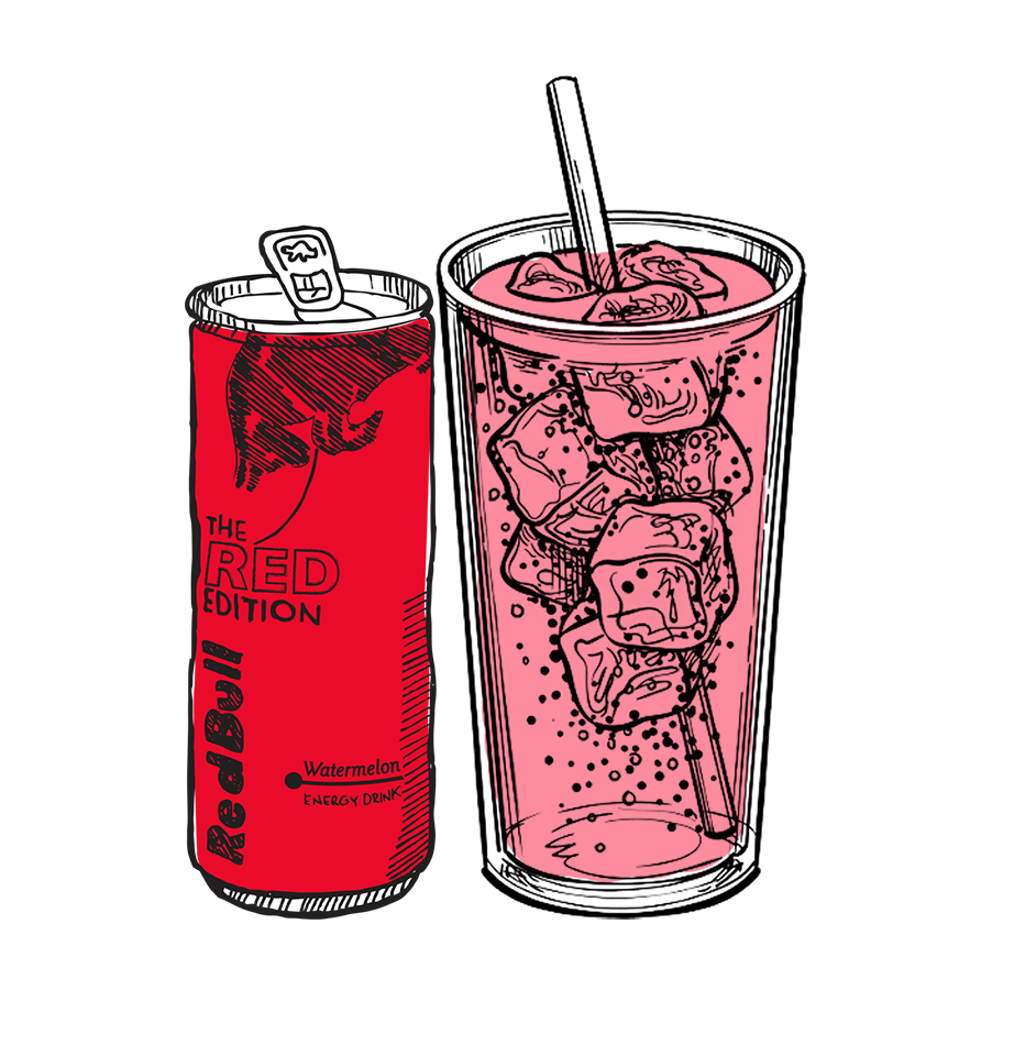 Red Bull Red Edition (Watermelon), Lemonade, Mint, Sprite